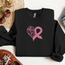 Our Pink Embroidered Cancer Ribbon Sweatshirt blends style seamlessly with advocacy. Make a statement, spark conversations, and stand tall as a supporter.